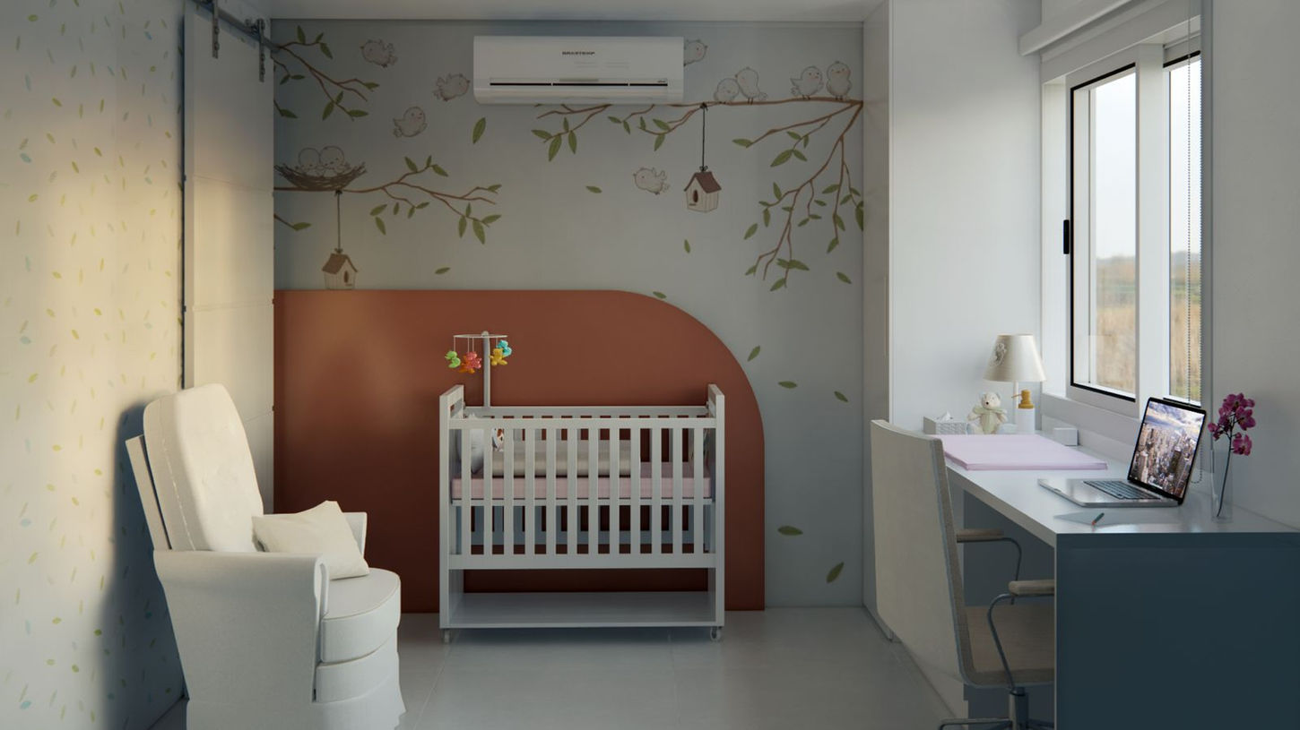 * Reorganizamos o layout para acomodar o berço e os elementos essenciais do quarto infantil, garantindo circulação segura e funcional.